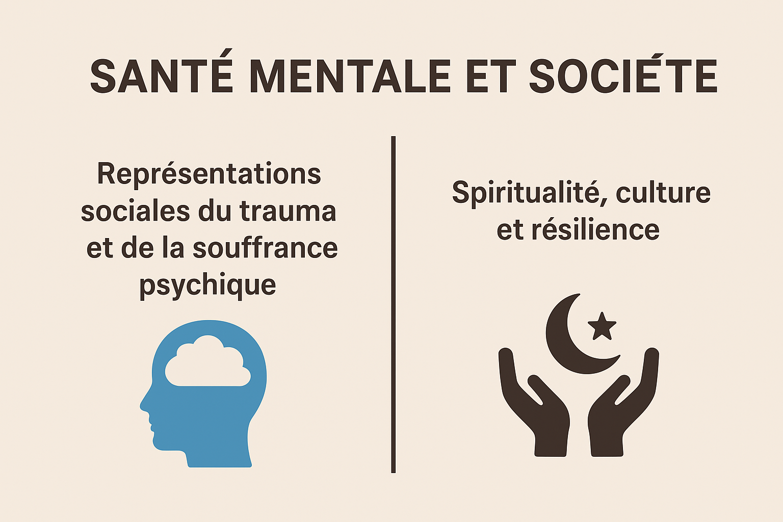 La santé mentale ne peut être comprise indépendamment du contexte social, culturel et religieux dans lequel vit l’individu. La manière dont une société perçoit la souffrance psychique et le trauma influence directement la manière dont cette souffrance est vécue, exprimée et traitée (Hobfoll et al., 2007). Dans le contexte algérien, par exemple, la souffrance psychique est souvent abordée à travers le prisme de la famille et de la communauté, qui jouent un rôle central dans le soutien émotionnel et social. La peur de stigmatisation peut amener les personnes à minimiser ou à cacher leur détresse, et la recherche d’aide se fait souvent dans un premier temps auprès des proches (parents, amis, cousins ...) ou des leaders religieux ( imams, cheikhs...), avant de consulter un professionnel de santé mentale (World Health Organization, 2020).