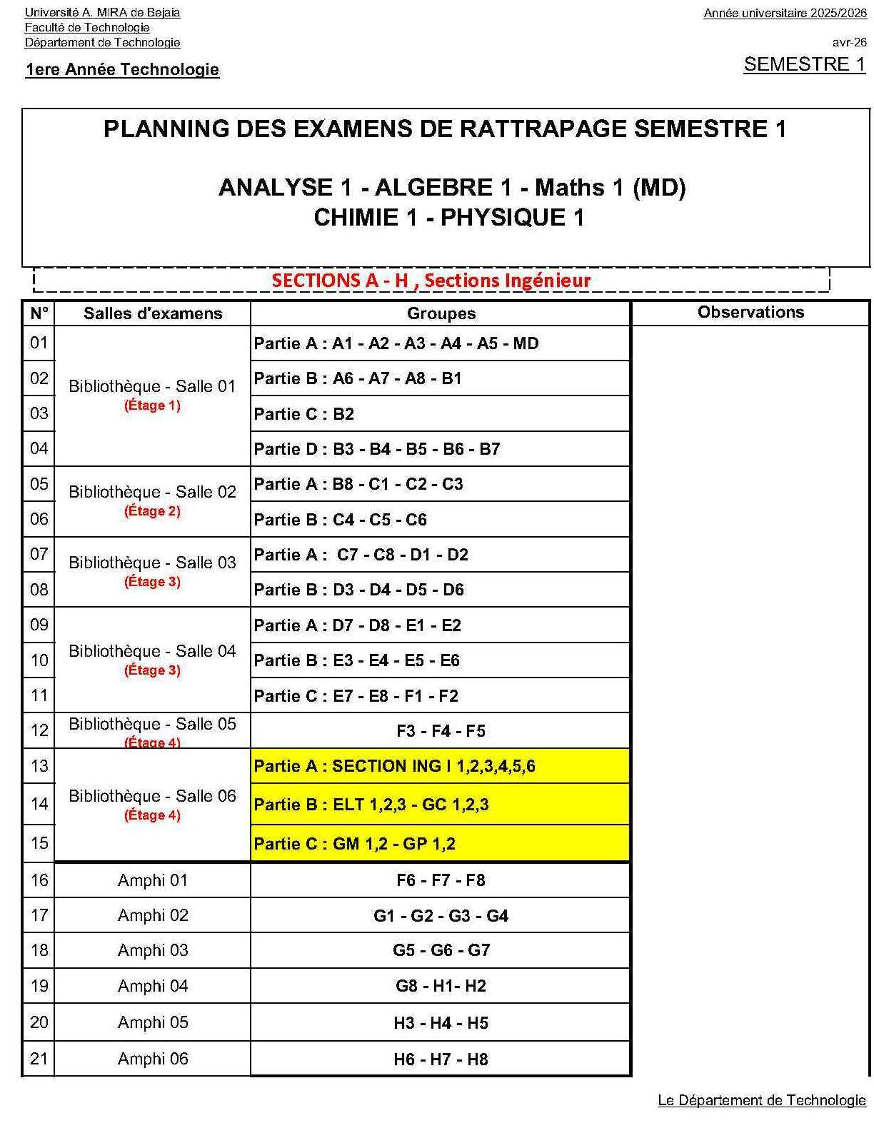 Emploi du Temps & Liste des Sections/Groupes Résultats des Examens & Contrôles Continus Réglementation et programmes L1 |