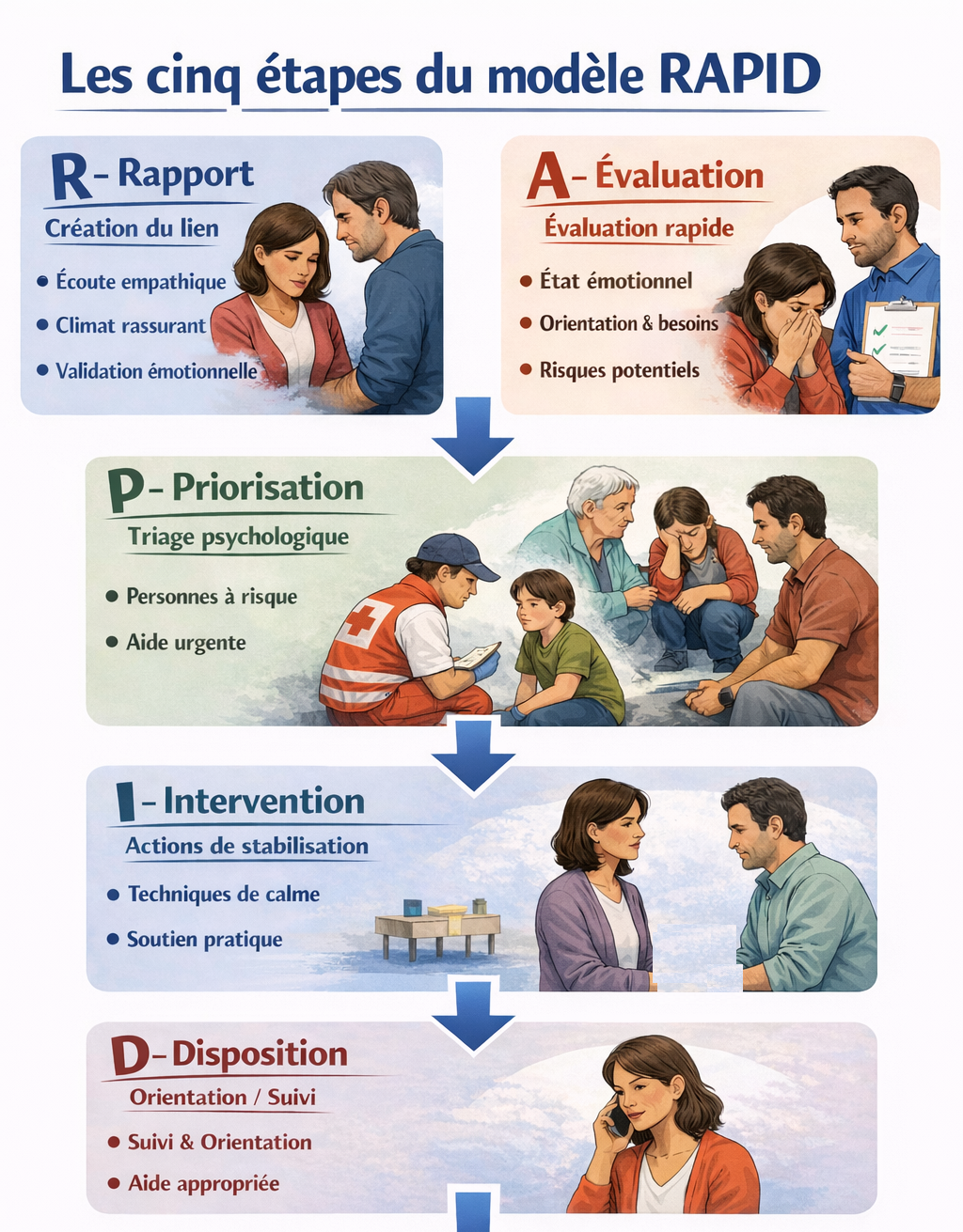 Le modèle RAPID, développé par George Everly (1950) et l’équipe Johns Hopkins (2006–2018), est l’un des protocoles les plus utilisés dans les interventions d’urgence.