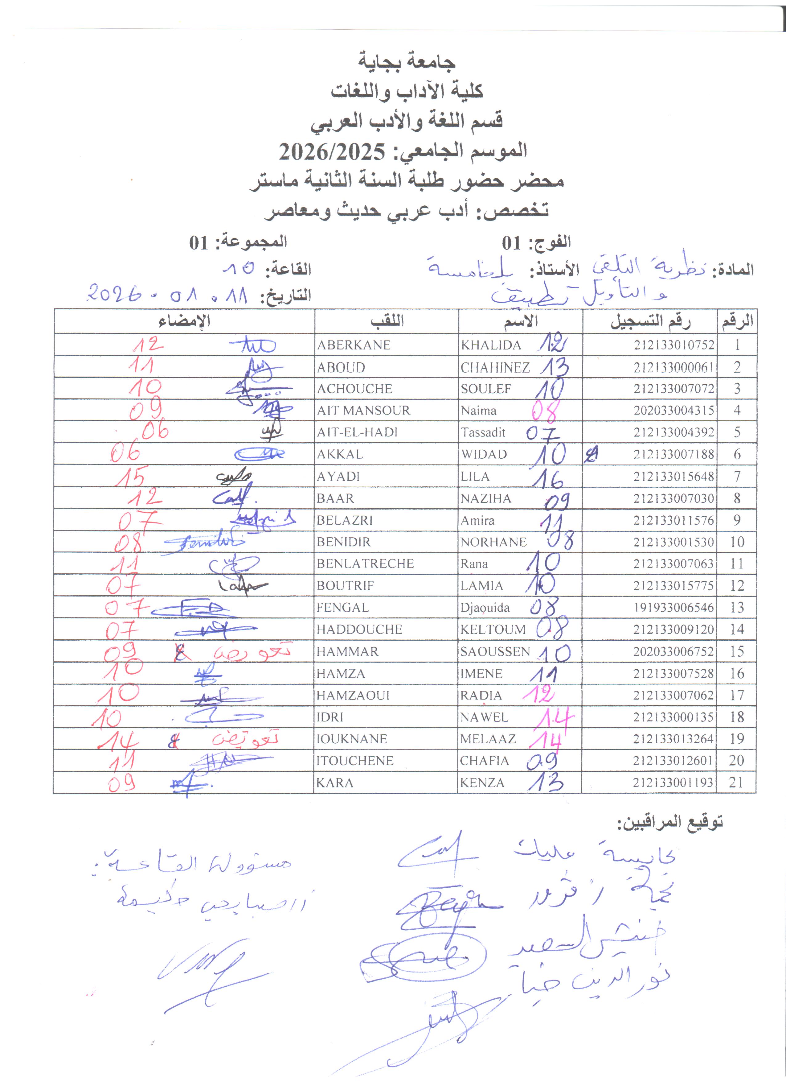 10. الفوج الأولعلامات التطبيق والمحاضرة