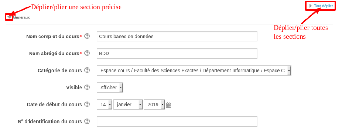 triangulaire à gauche de leur intitulé mais également "Tout déplier/Tout réduire" en cliquant sur le lien correspondant en haut ue formulaire.