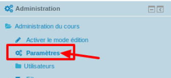 Pour accéder aux paramètres d'un espace de cours, cliquez sur le lien "Paramètres" du bloc"Administration"