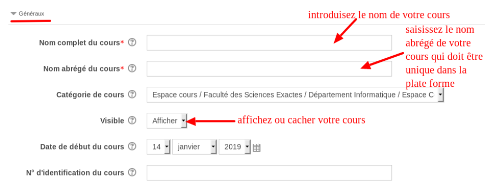 Si vous souhaitez prendre un peu de temps pour mettre en place votre cours et son contenu, il est conseillé de rendre votre cours invisible (indisponible) en choisissant "Cacher" pour la paramètre "Visible" (voire la capture d'écran ci-dessus) et de revenir modifier ce paramètre une fois la mise en place finie.