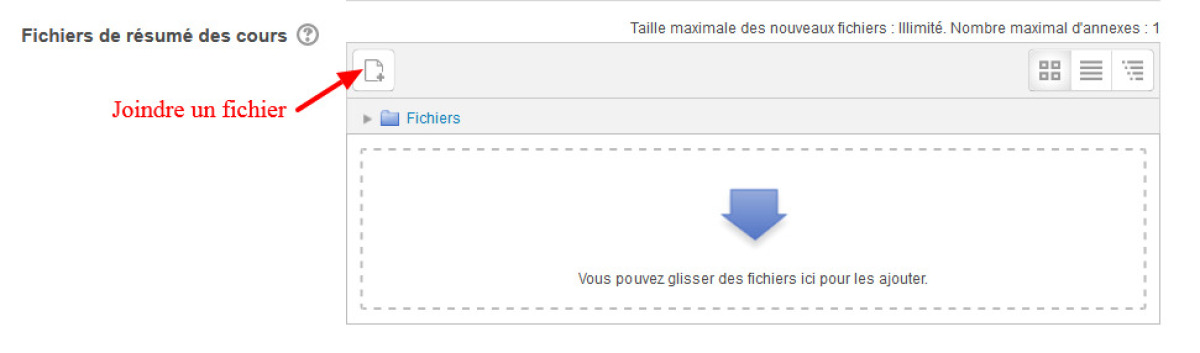 Dans la section "Description" on définit le "Résumé du cours", on peut également joindre un fichier du Résumé du cours.