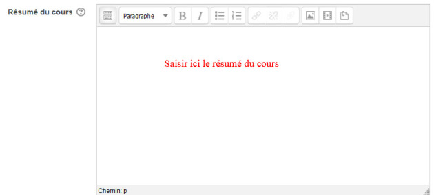 Le résumé du cours : est un bref texte de description du cours qui sera affiché dans la liste des cours au dessous du titre du cours.